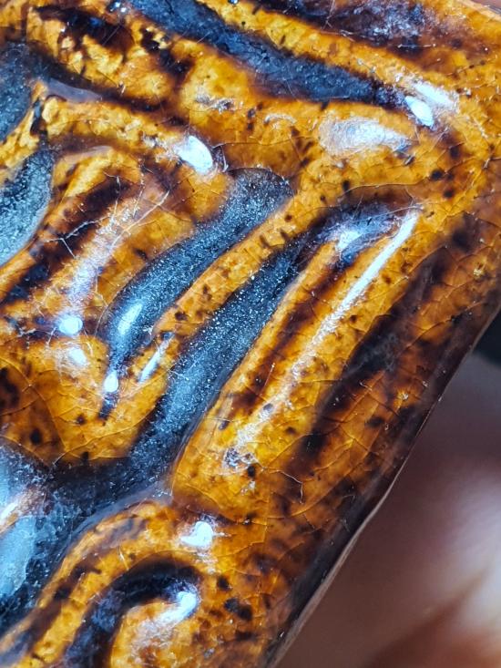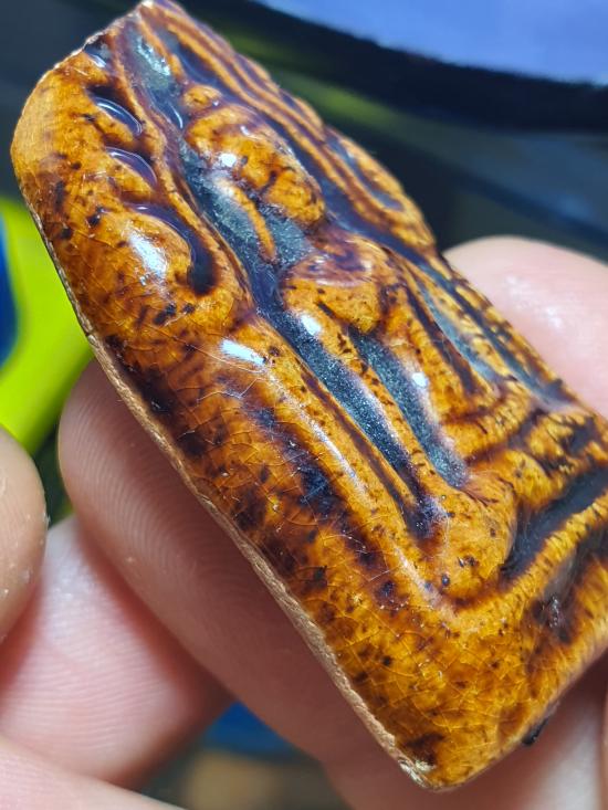 พระขุนแผนเคลือบไม่ทราบวัด มีปิ่นด้านบน |