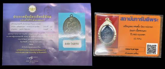 เหรียญหลวงพ่อพริ้ง วัดบางปะกอก รุ่นแรก 2483มีรอยจารสามจุด สภาพสวยเดิมมากๆ แท้ดูง่ายครับผม พร้อมใบประกาศงานใหญ่งานศูนย์ราชการแจ้งวัฒนะ และบัตรเวปG อีกหนึ่งใบ พร้อมตลับสั่งตัดสวยๆอีกหนึ่งใบ สวยๆแบบนี้