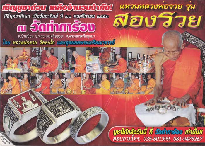 หลวงพ่อรวย วัดตะโก จ.อยุธยา แหวนเนื้อเงินลงยา ปี53 Size 66 |