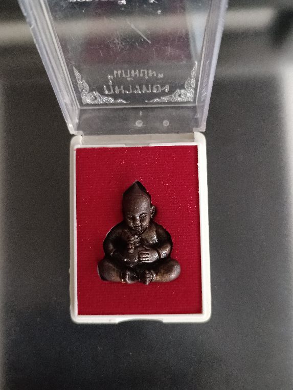 กุมารทองหัวแหลม "แก้มบุ๋ม" เนื้อทองแดงรมดำ ลต.ช้วน วัดขวาง สุพรรณบุรี สร้าง 3,352 ตน ก้นอุดผงพรายกุมาร เลขใต้ฐานเรียงสวยๆ "345" พร้อมกล่องเดิม