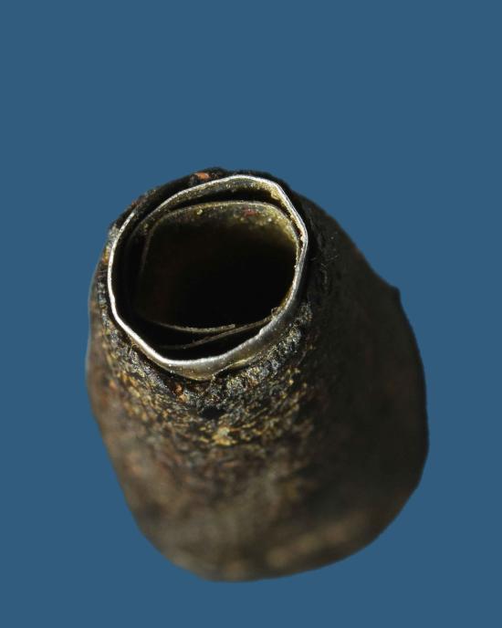 ตะกรุดผอกผงยา แกน เงิน ขนาด 1.5 นิ้ว ไม่ทราบที่ครับ
