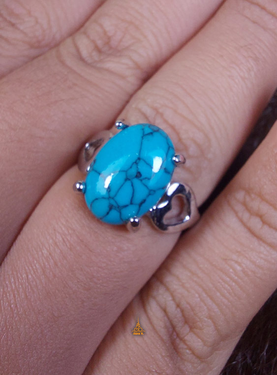 หัวแหวนสีฟ้าเทอร์คอยส์ ขนาด 58 ลายหัวใจฉลุ
