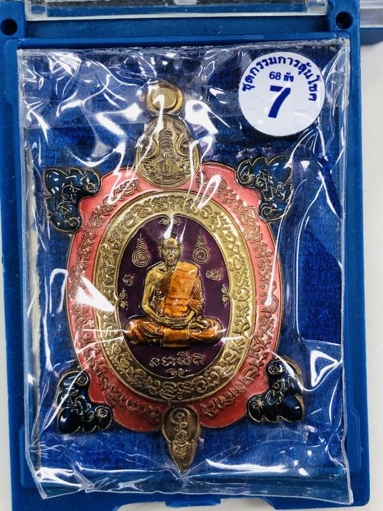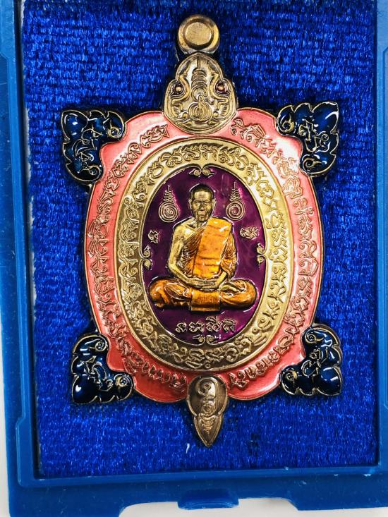 เหรียญพญาเต่าเรือน168 รวยทางเดียว หลวงพ่อสิน วัดระหารใหญ่ จ.ระยอง ชุดกรรมการลุ้นโชค เนื้อนวะลงยาจีวร ชมพู ม่วง ตีนน้ำเงิน หมายเลข 19 พร้อมกล่อง