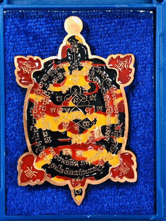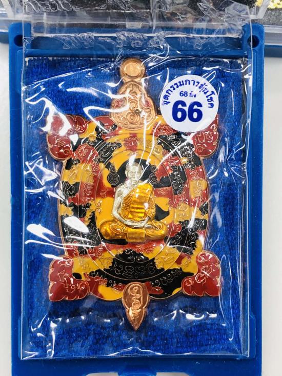 เหรียญพญาเต่าเรือน168 รวยทางเดียว หลวงพ่อสิน วัดระหารใหญ่ จ.ระยอง ชุดกรรมการลุ้นโชค เนื้อทองแดงหน้ากากเงิน ลงยาจีวร ลายพรางเหลืองแดงส้ม ตีนแดง หมายเลขแม่ทัพ เลข 1 พร้อมกล่อง