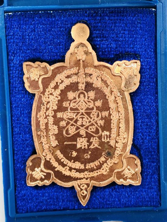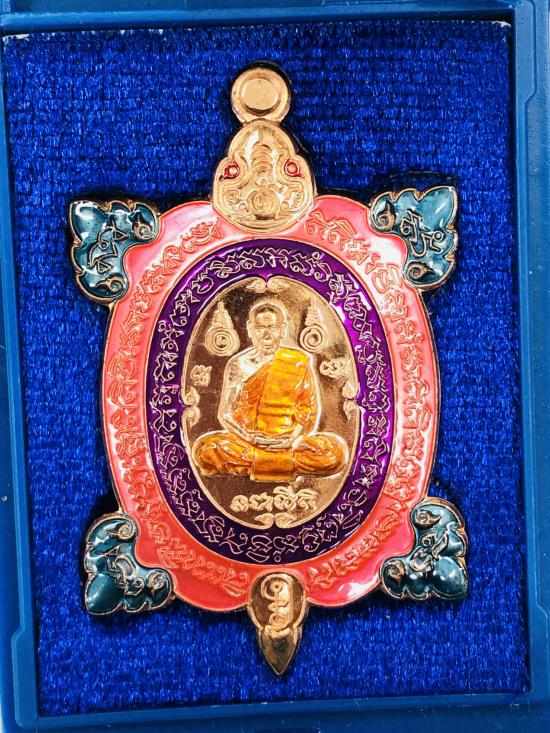 เหรียญพญาเต่าเรือน168 รวยทางเดียว หลวงพ่อสิน วัดระหารใหญ่ จ.ระยอง ชุดกรรมการลุ้นโชค เนื้อทองแดงลงยาจีวร ชมพู ม่วง ตีนฟ้า หมายเลข 8 พร้อมกล่อง