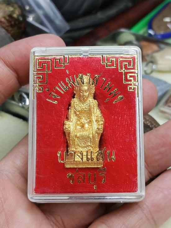 รายละเอียด รูปหล่อเจ้าแม่เขาสามมุข บางแสน ชลบุรี เนื้อกะไหล่ทอง พร้อมกล่องเดิม