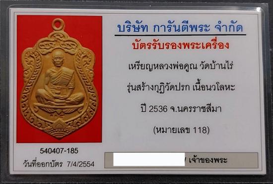 เหรียญเสมาวัดปรก หลวงพ่อคูณ วัดบ้านไร่ เนื้อนวะ เลข๑๑๘ สวยๆ