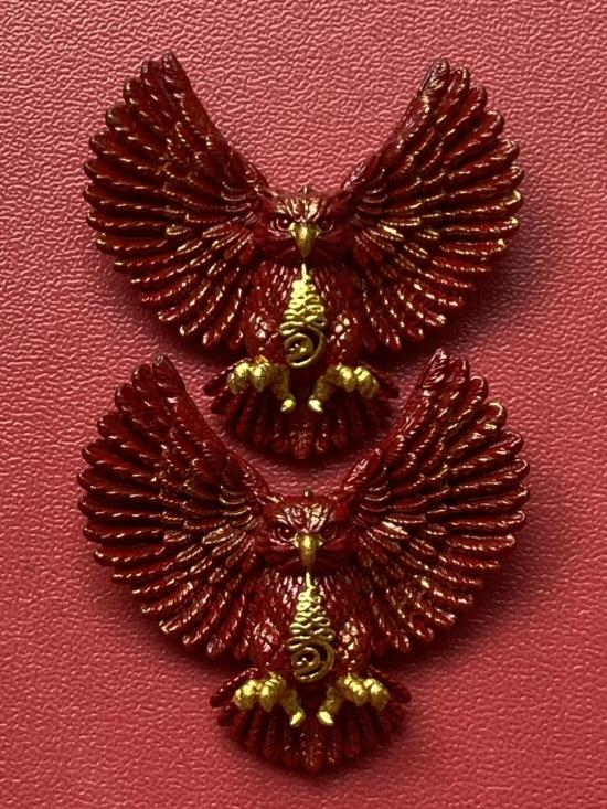 เคาะเดียวแดง หลวงปู่บุดดา รูปหล่อ รุ่นพญานกถึกทือเรียกทรัพย์ 2องค์ |