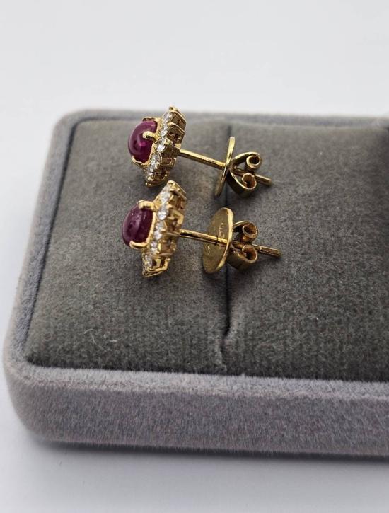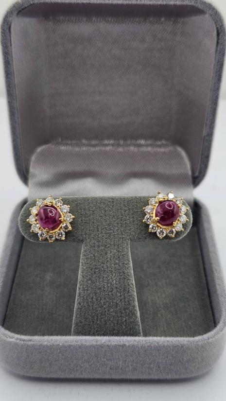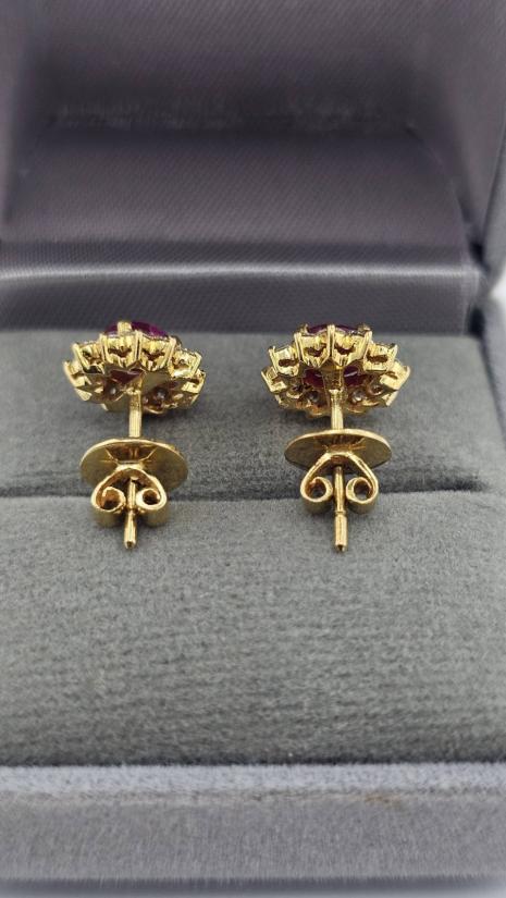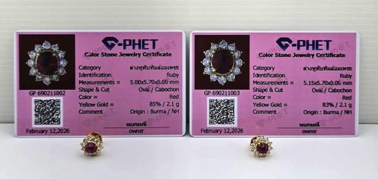 ต่างหูทับทิมล้อมเพชรแท้ (เพชร 24 เม็ด น้ำหนัก 0.69 ct.) ตัวเรือนทองแท้ 83% (น้ำหนัก 4.2 กรัม) **พร้อมใบเซอร์การันตีเพชร 2 ใบ**