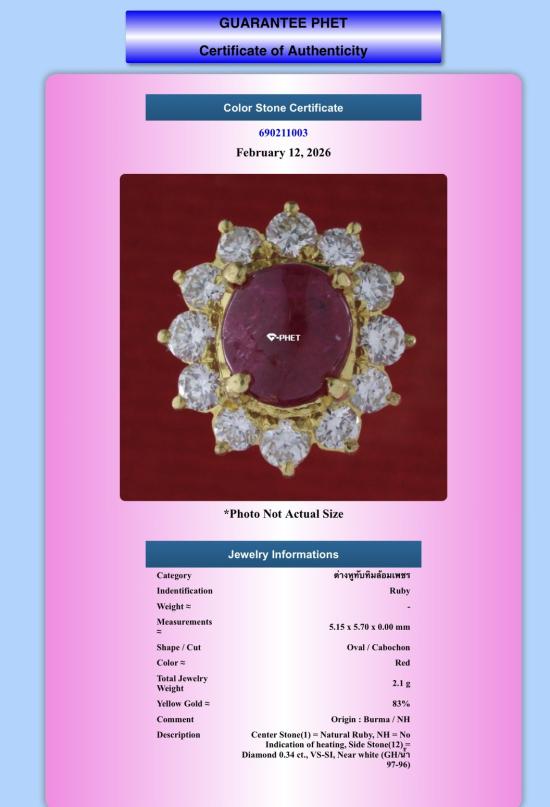-เพชรแท้ พลอยแท้ ทองแท้ **พร้อมใบเซอร์การันตีเพชร 2 ใบ**