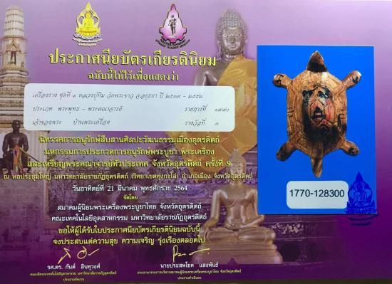 เต่ามหาลาภ ปี 47 หลวงปู่ทิม วัดพระขาว เนื้อไม้ขนุนนตายพราย ด้านหลังประทับตราวัด มีจารมือ คลาสสิก น่าสะสมมาก พร้อมใบประกาศนียบัตร หายากเเล้วครับ