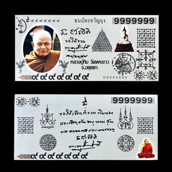 ธนบัตรขวัญถุง 9999999 หลวงปู่ทิม วัดพระขาว สวยเดิมๆไม่ผ่านการใช้
