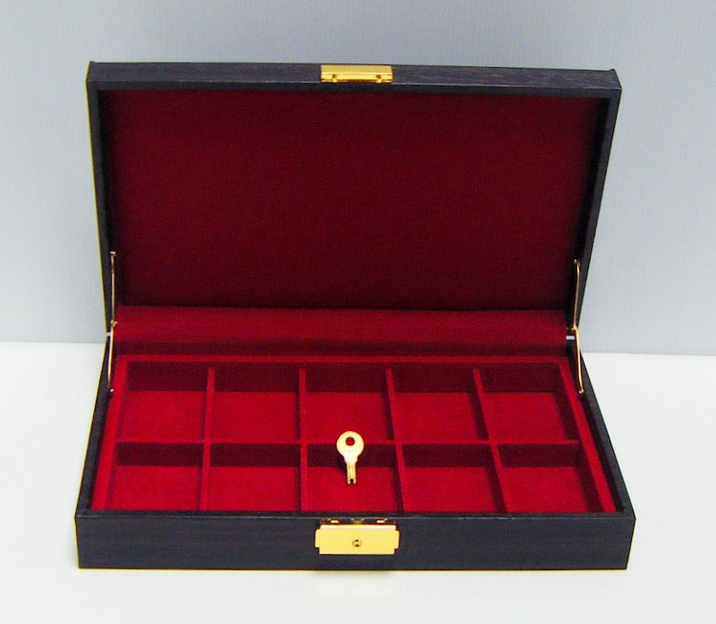 กล่องใส่พระแบบ 10ช่อง(รุ่นใหม่เอี่ยม) หุ้มหนังเทียมลายไม้แดง สวยหรู ใส่พระพร้อมกล่องพระประกวดได้เลยคะ พร้อมสามารถเก็บใส่เซฟธนาคารได้คะ มือ1ใหม่เอี่ยม นะคะ