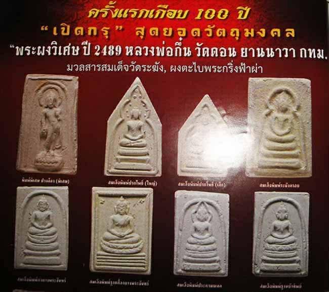 รายละเอียด พระเนื้อผงหลวงพ่อกึ๋น วัดดอนยานนาวา พ.ศ.2489 ชุดนี้ปลุกเสกหลายวาระ พิธีใหญ่ เกจิคณาจารย์ดังมากมาย จัดเป็นพระดีราคาเยาว์ น่าสะสมครับ