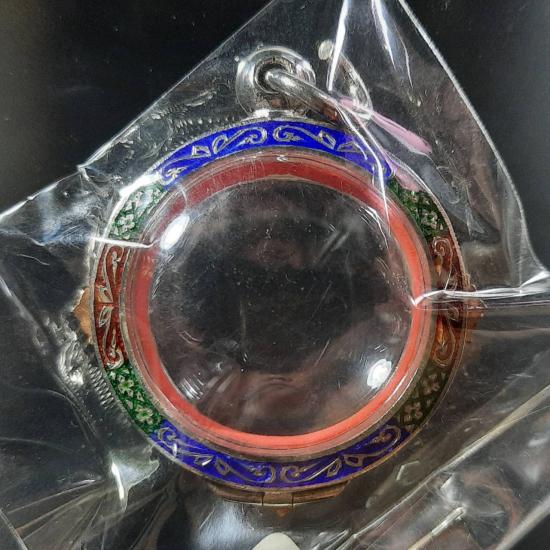 ตลับเงินแท้สั่งทำพิเศษ แกะชุบหน้าเงิน-นาค,หลังแกะลายลงยา ใส่พระเหรียญกลมหรือเหรียญจตุคาม หน้าจอกว้าง 2.7 ซม.สูง 2.7 ซม. สภาพสวยเดิม บานพับแข็งแรง ห่วงครบ ไม่เคยใช้งาน