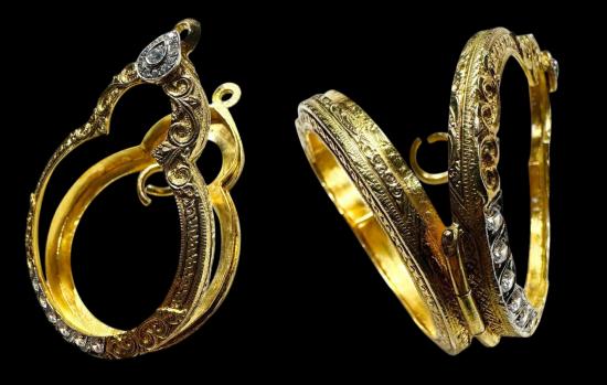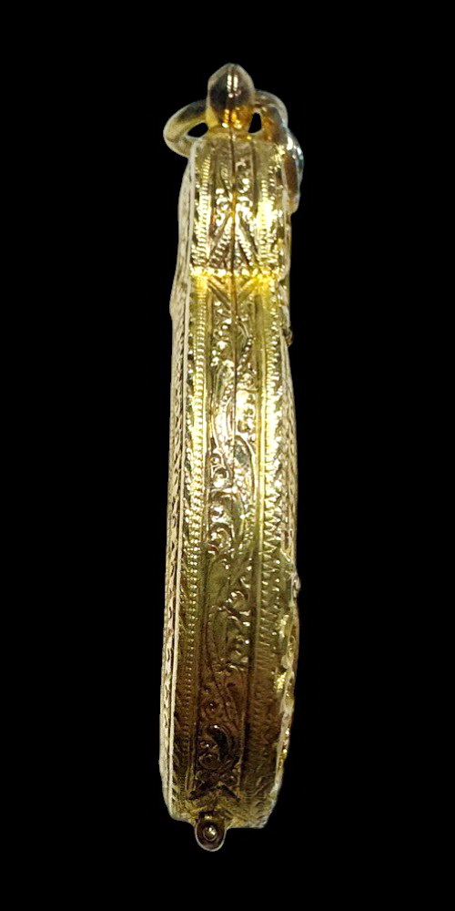 ตลับเงินแท้ 88.75% ชุบทองมือสองแกะลายใส่เหรียญมหาชนกใหญ่แบบเปิดหน้า-หลังสวยมาก