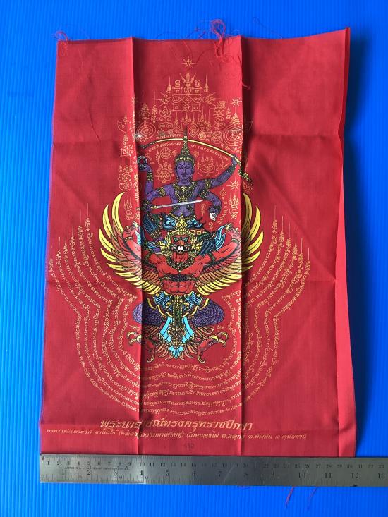 ผ้ายันต์ พระนารายณ์ทรงครุฑราชปักษา รุ่นดวงมหาเศรษฐี หลวงปู่ดวงเศรษฐี ฐานวโร วัดหนองไผ่ จ.อุทัยธานี สีแดง ขนาด A3 ( 11.5 นิ้ว x 16.5 นิ้ว)