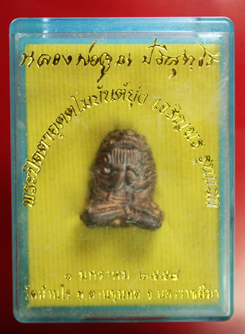 พระปิดตา อุตตโมยันต์ยุ่ง เจริญพร หลวงพ่อคูณ วัดบ้านไร่ สอดตะกรุดพร้อมกล่อง |
