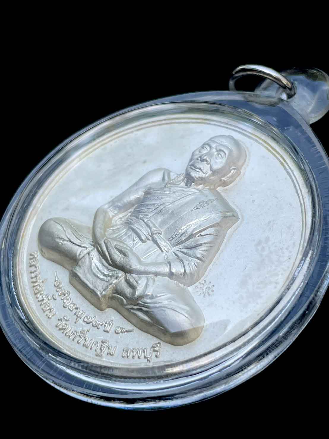 เนื้อไมครอนเงิน ขนาดใหญ่ 4.5 ซ.ม. สร้างปี 2548 ตอกโค๊ต วฐ เลี่ยมพลาสติก สวยงาม
