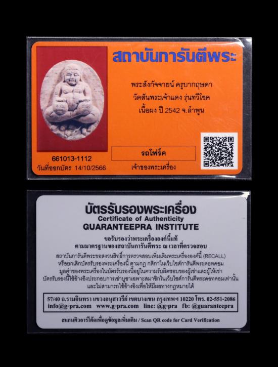 พระสังกัจจายน์ ครูบากฤษดา วัดสันพระเจ้าแดง รุ่นทวีโชค ปี 2542 เลี่ยมเงิน พร้อมบัตร