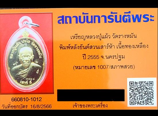 หลวงปู่แผ้ว ปวโร วัดรางหมัน ต.รางพิกุล อ.กำแพงแสน จ.นครปฐม ฉายา"เทพเจ้าแห่งเมืองกำแพงแสน"พระเครื่องของท่านได้ถูกกล่าวขานและเสาะแสวงหาเช่าบูชากันทั่วประเทศ พระเครื่องของท่านโดดเด่นมากด้านมหาอุด หยุดกระสุนปืน แคล้วคลาด ปลอดภัย คงกระพันชาตรี หลายคนพบประสบการณ์หนักๆ รอดตายราวปาฏิหาริย์ อย่างน่าเหลือเชื่อ หลายคนทดลองนำพระเครื่องของท่านไปทดสอบความขลังโดยใช้อาวุธปืนยิง แต่ก็ต้องตกตะลึงปืนยิงไม่ออก กระสุนปืนคาลำกล้อง ปากกระบอกปืนแตกก็พบได้บ่อยครั้ง จึงเป็นที่แน่ชัดแน่ใจชัดเจนแล้วว่า พระเครื่องหลวงปู่แผ้วทุกรุ่นปืนยิงไม่ออก!! แต่ถ้าจะถามว่าพระเครื่องรุ่นใดของหลวงปู่แผ้ว สุดยอดที่สุด!! เซียนพระและบรรดาลูกศิษย์จะรู้ในทันทีเลยว่า"เหรียญยันต์มเหศวรหรือยันต์สวน เสาร์ 5"พุทธคุณรุนแรงที่สุด!! เป็นเหรียญที่พบประสบการณ์หนักๆพบถี่และบ่อยที่สุด หลายท่านที่รอดตาย รอดพ้นภยันตราย ถึงกับยกนิ้วให้ว่า หลวงปู่แผ้ว ปวโร มหาอุดหยุดกระสุนปืนของจริงในยุคนี้ เหรียญรุ่นนี้พุทธคุณรุนแรงก็เนื่องมาจากหลวงปู่แผ้วท่านสั่งให้นำเหรียญรุ่นนี้ทั้งหมดไปไว้ในกุฏิของท่าน!! ท่านอธิษฐานจิตให้ทุกวันทุกคืนมาเป็นเวลานานนับปี พอมาถึงวันสำคัญของรุ่นนี้ วันเสาร์ที่ 5 เดือน 5 มะโรง 5 ปี 55 ซึ่งเป็นปีที่ตรงกับปีพุทธชยันตี หลวงปู่ท่านได้อธิษฐานจิตอย่างเต็มที่เต็มกำลังในวันมหาฤกษ์มหามงคลดังกล่าว พิธีสุดเข้มขลัง หลวงปู่ประจุพลังงานอันศักดิ์สิทธิ์ให้อย่างเต็มที่สุดๆท่านอธิษฐานจิตเสร็จเวลา 9.55 นาฬิกา พอดีเป๊ะ!! ที่สำคัญเหรียญรุ่นนี้หลวงปู่ท่านให้ประทับ"ยันต์มเหศวรหรือยันต์สวน"ไว้ด้านหลังเหรียญ ย่อมถือได้ว่าเป็นยันต์สุดยอดมหาอุดของท่าน เหรียญรุ่นนี้จึงสุดยอดที่สุด!! หลังอธิษฐานจิตเสร็จ กรรมการผู้จัดสร้างได้นำเหรียญรุ่นนี้ออกจากกุฏิหลวงปู่ แต่สิ่งที่ทุกคนต้องตกตะลึงและเป็นที่ฮือฮา! เมื่อกรรมการกลุ่มหนึ่งได้หยิบเหรียญเพื่อนำมาทดสอบพุทธคุณกันภายในวัดรางหมันทันที!!โดยมีสื่อมวลชนเป็นสักขีพยาน ใช้อาวุธปืนหลายขนาดยิง คนยิงสับไกปืนเต็มเหนี่ยว แต่ผลปรากฏว่าปืนยิงไม่ออก!! กี่กระบอกก็ยิงไม่ออก!! คนยิงทดสอบเกิดอาการตัวสั่น!! เหงื่อแตก!! หายใจเร็วผิดปกติ!! อาเจียน!! จึงรีบขึ้นไปกราบขอขมาหลวงปู่แผ้วบนกุฏิท่าน!! ท่านจึงรดน้ำมนต์ให้ ท่านบอกว่า"เหรียญรุ่นนี้ขลัง แรงมากนะ ฤกษ์ยามแข็งแบบนี้หาไม่ได้อีกแล้ว"หลังจากนั้นเป็นต้นมากระแสเหรียญเสาร์ 5 ของหลวงปู่แผ้วโด่งดังไปทั่วประเทศ ปัจจุบันนี้เริ่มหายาก มีราคาแพงทุกเนื้อ เป็นพระหล