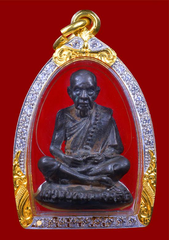 พระรูปหล่อเหมือนพิมพ์เบ้าทุบ หลวงปู่หมุน ฐิตสีโล รุ่นเสาร์ 5 บูชาครู ปี 2543 เนื้อนวโลหะ เลี่ยมทอง