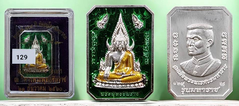 เหรียญแปดเหลี่ยม พระพุทธชินราชหลังพระนเรศวร รุ่นมหาราช 118 ปีเนื้อเงินลงยา(สีเขียว) หมายเลข 129 สภาพสวยมากๆ ครับ