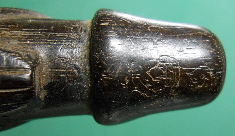 ปลัดขิกหลวงพ่อกลั่น วัดอินทราวาส จ.อ่างทอง ขนาด 3 นิ้ว ยุคกลาง มีรอยจารทั้งตัว ผิวไม้แห้งคร่ำจัดจ้าน |