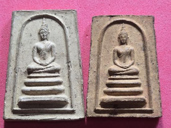 (พระอาจารย์ฝั้น อาจาโร ร่วมปลุกเสก) พระพิมพ์สมเด็จพระพุทธโคดมหลังพุทโธ หลวงพ่อขอม วัดไผ่โรงวัว เนื้อดิน สร้าง ปี2518 |