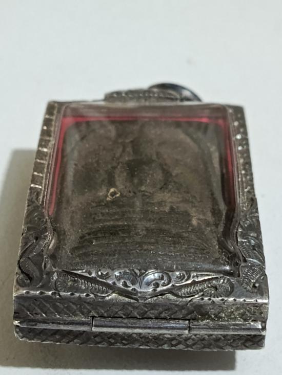 ตลับเงินแท้ 95.2เปอร์เซ็นมือ2 เปิดหลังแกะลายกนก สั่งตัดพิเศษ สั่งทำห่วงใหญ่ ใส่พระสมเด็จ หนาหนัก 20.20 กรัม ส่งพร้อมสมเด็จ9 ชั้นหูบายศรีเนื้อว่าน งานเก่าสนามแพงหมดแล้วครับ