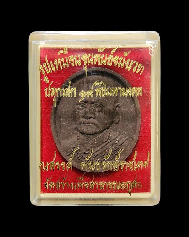 ท่านขุนพันธ์จอมขมังเวทย์ ที่ระลึกพิธีพระราชทานเพลิงศพ ไตรภาคีศรีนคร วัดนางตรา ปี 2548 หลังพิมพ์ลายนิ้วมือ ขุนพันธ์ อยู่เย็นเป็นสุข ไว้เป็นที่ระลึก เนื้อผงมหาว่านน้ำตาลแดง ปลุกเสก 19