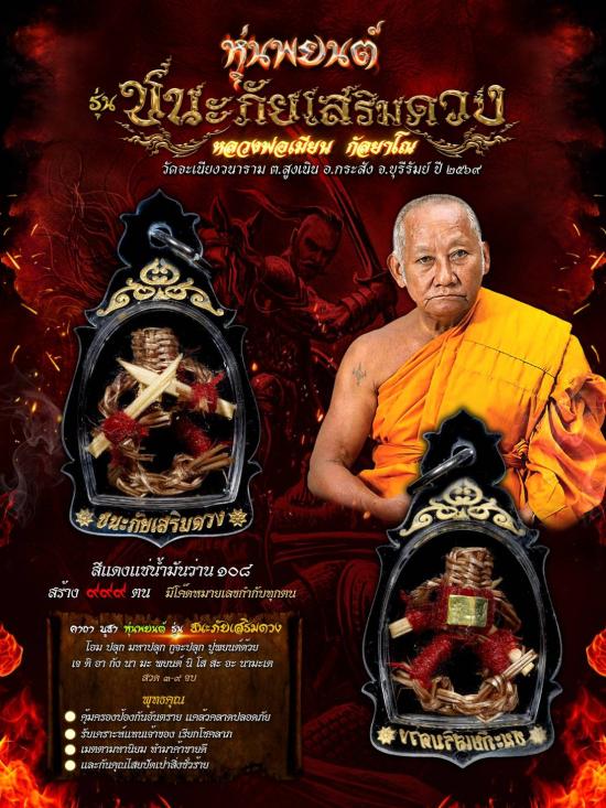 หุ่นพยนต์ รุ่น ชนะภัยเสริมดวง หลวงพ่อเมียน กัลยาโณ วัดจะเนียงวนาราม ต.สูงเนิน อ.กระสัง จ.บุรีรัมย์ ปี ๒๕๖๙ สีเเดง หมายเลข 5 พร้อมซองเดิม