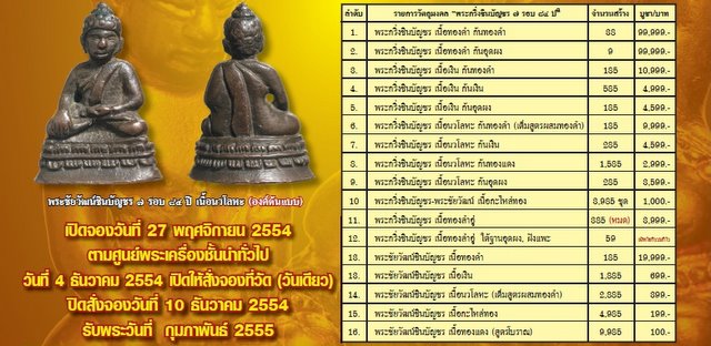จำนวนการสร้างเนื้อทองคำ 185 องค์ ราคาจองปี 2555 19,999- บาท