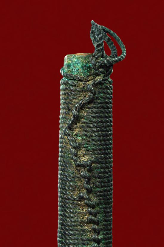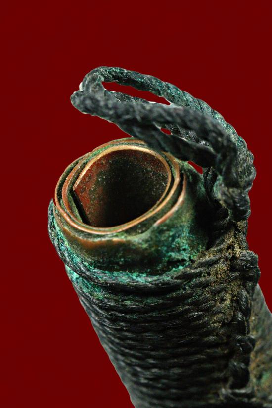 ตะกรุดทองแดง ถักเชือกดำ ขนาด 3 นิ้ว เก่า |