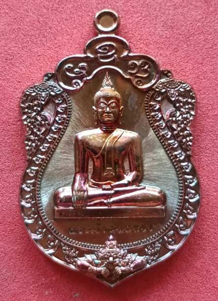 เหรียญเสมา พระเจ้าตนหลวง รุ่นทรัพย์วิเศษ วัดศรีโคมคำ เนื้อทองแดงรุ้ง ปี 2561 No.524
