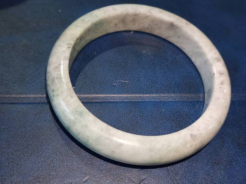 กำไลหยกแท้ ข้อมือผู้ชายใส่ สีขาวสวยออกนวลๆๆรับประกันหยกแท้กว้างประมาณ3.9 นิ้วตามไม้บรรทัด