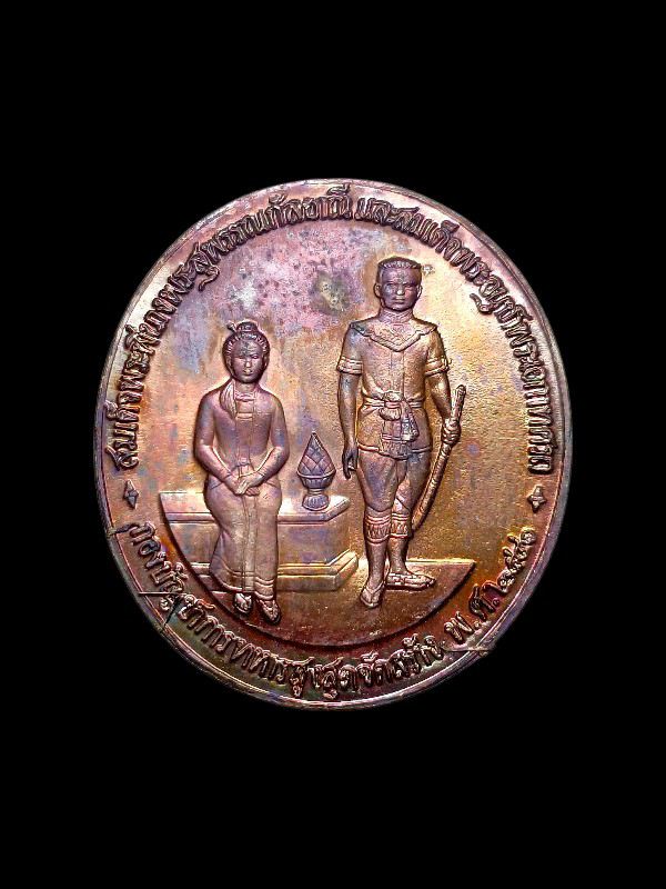 เหรียญสมเด็จพระนเรศวรมหาราช หลังสมเด็จพระพี่นางสุพรรณกัลยานี และสมเด็จพระอนุชาพระเอกาทศรถ ที่ระลึกในงานก่อสร้างพระบรมราชานุสาวรีย์ กองบัญชาการทหารสูงสุด จัดสร้างปี 2541