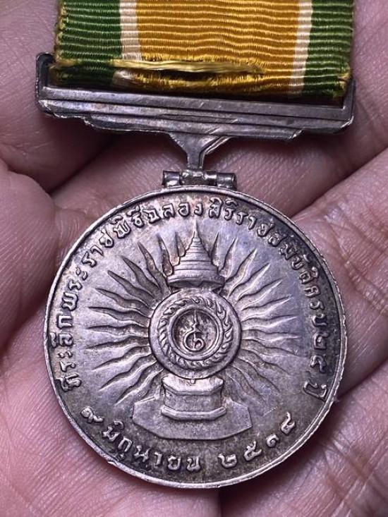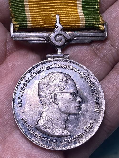 แพรแถบ ร.9 ที่ระลึกพระราชพิธีฉลองสิริราชสมบัติครบ 25 ปี (เนื้อเงิน)