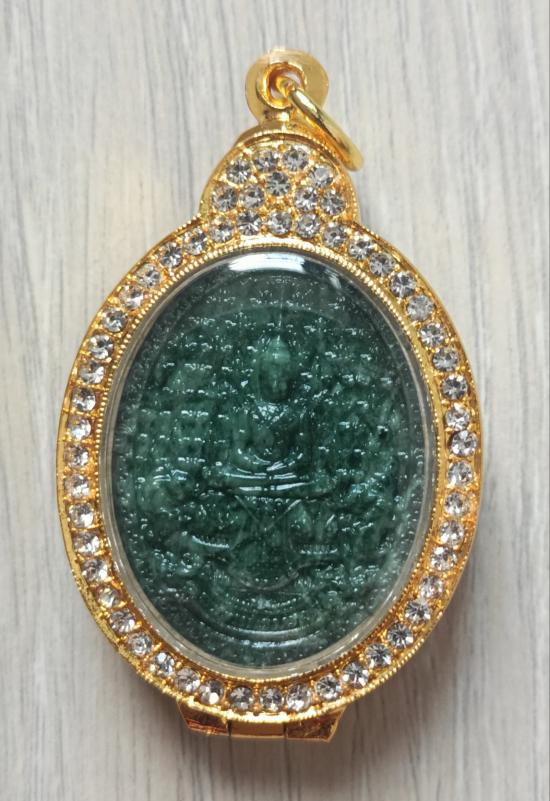 วัดใจเคาะเดียวแดงจ้า พระแก้วมรกต แกะจากหินมงคล ออกวัดท้ายน้ำ หมายเลข27 พร้อมตลับอิตาลีฝังเพชร เคาะเดียวแดงจ้า