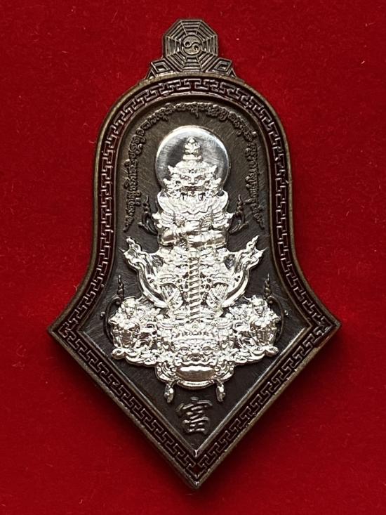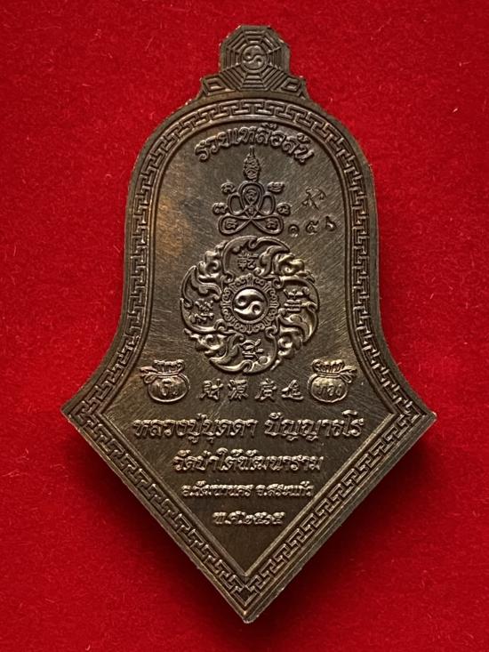 เคาะเดียวแดง หลวงปู่บุดดา ท้าวเวส รุ่น รวยเหลือล้น เนื้อ นวะโบราณ หน้ากากเงินลงยาขอบแดง |