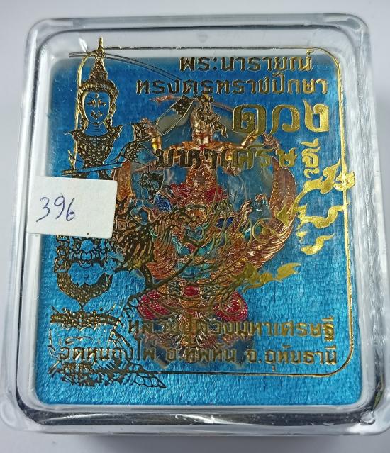 พระนารายณ์ทรงครุฑราชปักษา รุ่น ดวงมหาเศรษฐี หลวงปู่ดวงเศรษฐี วัดหนองไผ่ เนื้อเบญจโลหะลงยา (สูง 4.7 ซม.) "แยกชุดของขวัญ มูลค่า800บาท" เบอร์ 396 พร้อมกล่องเดิมครับ