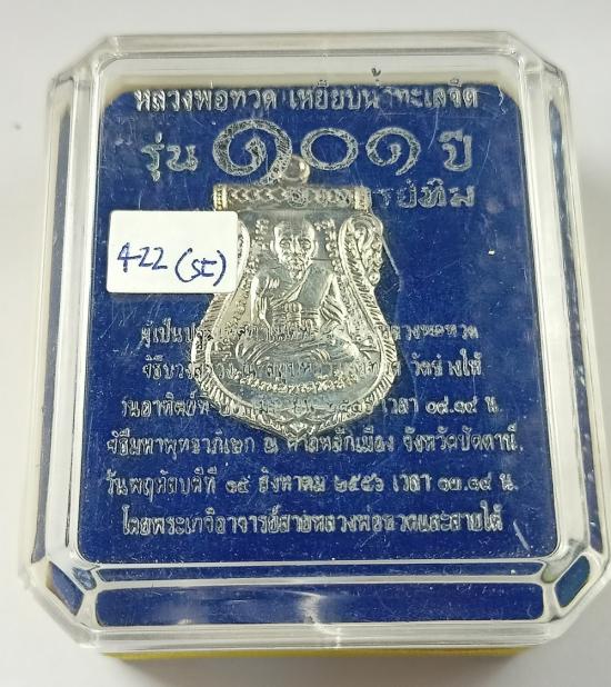 เหรียญเสมาหน้าเลื่อน หลวงพ่อทวด 101ปี อ.ทิม เนื้อเงิน เบอร์ 422 พร้อมกล่องเดิมครับ (SI)