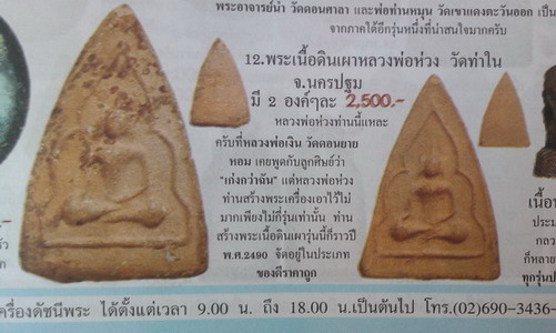 พระเนื้อดินพิมพ์กลีบบัว หลวงพ่อห่วง วัดท่าใน จ.นครปฐม