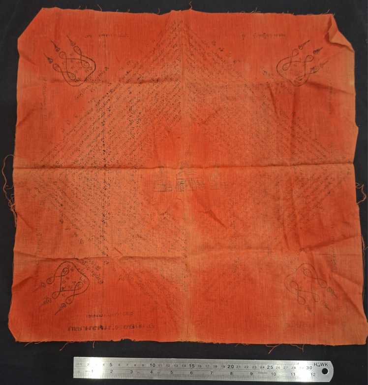 ผ้ายันต์เก่าผืนใหญ่ ไม่ทราบที่ ไม่ทราบปี ***ผ้ายันต์สภาพเก่ามีคราบ พิจารณาตามภาพประกอบ***