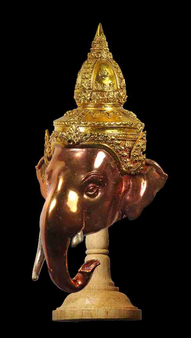 เศียรพระพิฆเณศ เรือนเทวาบริรักษ์ เนื้อโลหะทำสีพร้อมแท่นไม้
