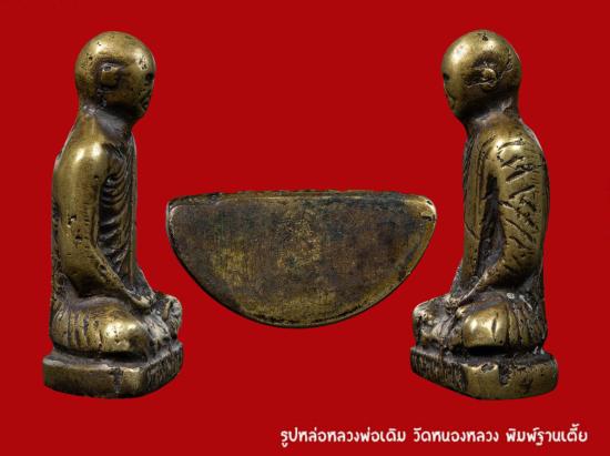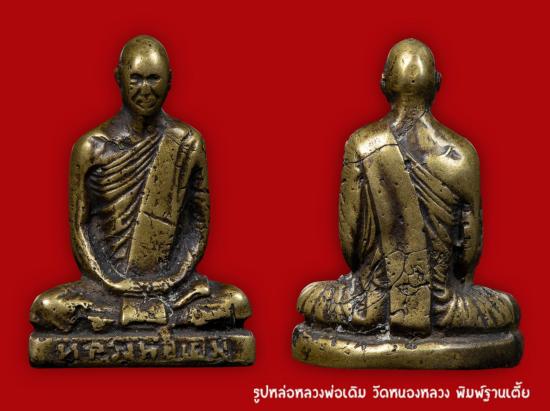 รูปหล่อหลวงพ่อเดิม วัดหนองหลวง พิมพ์ฐานเตี้ยพระรูปหล่อโบราณหลวงพ่อเดิม วัดหนองหลวง อ.ท่าตะโก จ.นครสวรรค์ จัดสร้างขึ้นในราวปี พ.ศ.2470-2480 เมื่อคราวบูรณะปฏิสังขรณ์วัดหนองหลวง พระรูปหล่อโบราณหลวงพ่อเดิมรุ่นนี้กล่าวกันว่า เป็นพระรูปหล่อรุ่นแรกของท่าน แต่ประวัติการสร้างไม่มีการบันทึกบอกกล่าว ได้แต่คำบอกเล่าของนักนิยมสะสมพระรุ่นครูว่าเทหล่อที่วัดหนองหลวง รูปหล่อรุ่นนี้เทหล่อด้วยเนื้อทองผสมวรรณะเหลืองปนขาวเล็กน้อย เป็นพระเทหล่อโบราณแม่พิมพ์ประกบเทเป็นช่อตัดชนวนใต้ฐาน ในการทำแม่พิมพ์นายช่างได้ทำแม่พิมพ์ขึ้นด้วยกัน 2 แบบพิมพ์ คือ พิมพ์ฐานเตี้ย และพิมพ์ฐานสูงครับ