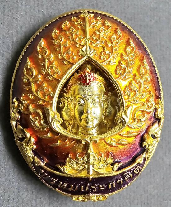 "แถมยกลัง" เหรียญหล่อพุทธศิลป์ รุ่น "พรหมประกาศิต" หลังทะลุซุ้ม หลวงพ่อพัฒน์ ปุญญกาโม วัดห้วยด้วน จ.นครสวรรค์ เนื้อชุบทองลงยามาสเตอร์พีชหน้า-หลัง องค์ชุบทองลงยา ฝังพลอยขาว เรืองแสง เลข ๒๘.