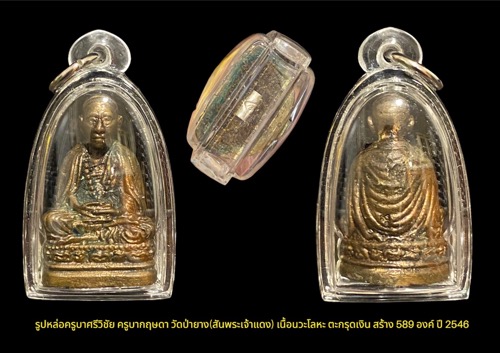 รูปหล่อครูบาศรีวิชัย ครูบากฤษดา วัดป่ายาง(สันพระเจ้าแดง) เนื้อนวะโลหะ ตะกรุดเงิน สร้าง 589 องค์ ปี 2546 เคาะเดียว