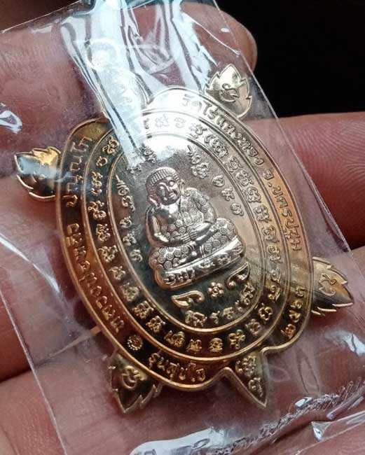 เหรียญพญาเต่าเรือนหลวงปู่หลิว รุ่น สุขใจ 63 พิมพ์ใหญ่ เนื้ออัลปาก้า ไม่แกะซีล พร้อมกล่อง หมายเลข 1511