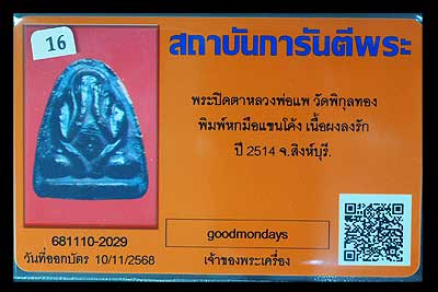 พระปิดตา เนื้อผงใบลาน ปี2514 หลวงพ่อแพ วัดพิกุลทอง สิงห์บุรี